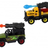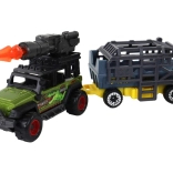 Prima componentă o reprezintă două vehicule cu remorci, care permit transportul dinozaurilor pe teren variat. Fiecare este echipat cu un lansator rotativ, care aduce un plus de acțiune jocului. Detaliile reproduse cu grijă fac jocul și mai captivant.