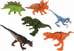 Setul include 8 dinozauri din specii diferite, cu aspect fidel și textură realistă, care stimulează imaginația și jocul tematic. Combinația de plastic rezistent și piese din cauciuc flexibil asigură o prindere plăcută și o durată lungă de viață în utilizarea zilnică.