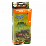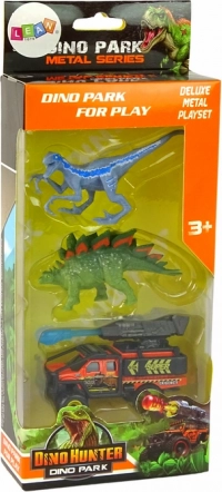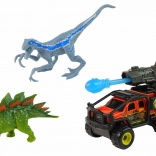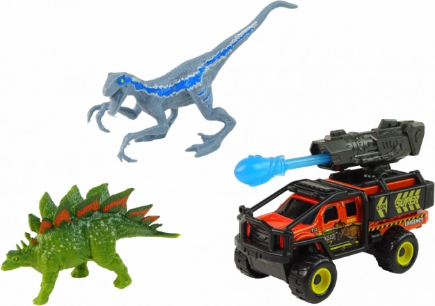 Acest set îi poartă pe copii în fascinanta lume a dinozaurilor. Include un velociraptor cu colorit albastru-maro și dungi pentru un aspect autentic și un stegosaurus verde cu o „coamă” portocalie accentuată pe spate. De asemenea, este inclus un vehicul modern de teren echipat cu un lansator de rachete cu proiectil mobil pentru și mai multă acțiune.
