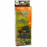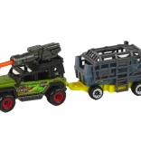 - 2 figurine de dinozauri, automobil de teren cu lansator de rachete, remorcă cu cușcă, ambalaj original