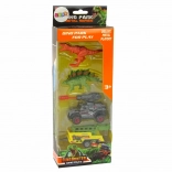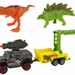 - 2 dinozauri, mașină off-road cu lansator de rachete, remorcă cu cușcă, ambalaj original