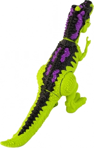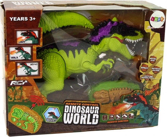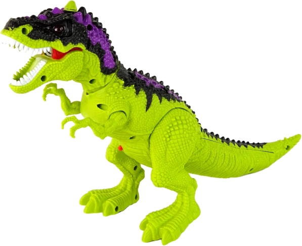 Dinozaurul cu telecomandă, în culoarea verde, este un dinozaur dinamic care funcționează cu 3 baterii AA de 1,5V (neincluse, se introduc în coadă), ceea ce îi conferă un comportament realist. Emite lumină roșie și sunete caracteristice de dinozaur, oferind un efect înfricoșător.