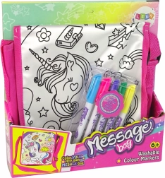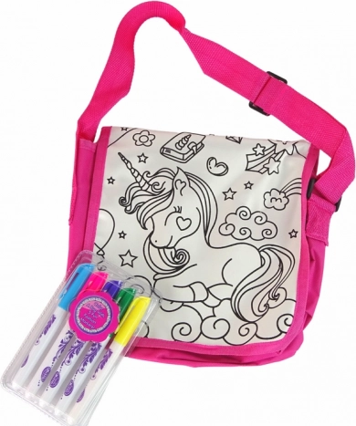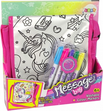 Această poșetă adorabilă cu motiv unicorn transformă creația în distracție. Copiii pot colora permanent poșeta după propria imaginație și o pot purta cu mândrie la școală, în excursii sau la prieteni. Datorită culorilor vii ale markerelor, designul devine ușor, jucăuș și motivant.