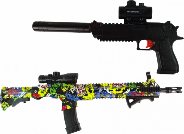Acest set de arme oferă o experiență realistă și numeroase funcții avansate, ceea ce îl face un accesoriu fascinant pentru pasionații de militarie. Pușca și pistolul impresionează nu doar prin aspect, ci și prin opțiunile extinse.
