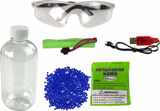 Setul include și ochelari de protecție care vă asigură siguranța în timpul tragerii. În plus, veți găsi bile și un recipient de depozitare, astfel încât să aveți tot ce vă trebuie pentru a vă bucura de o experiență realistă.