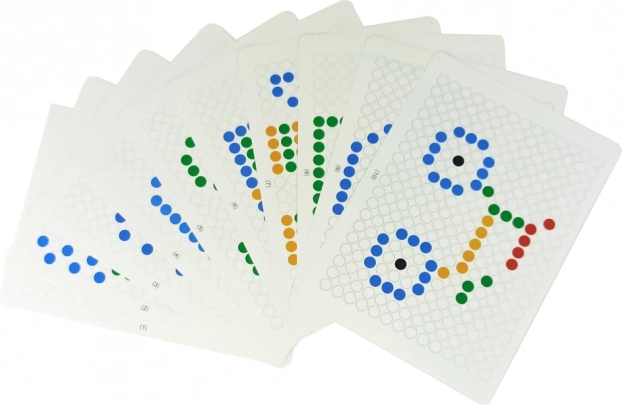 Distracția constă în așezarea mărgelelor pe placa de joc după propriile idei sau folosind 20 de modele diferite de puzzle incluse în set. Este nu doar o distracție fantastică, ci și o oportunitate excelentă de a dezvolta abilitățile manuale și coordonarea mână-ochi a copilului dumneavoastră.