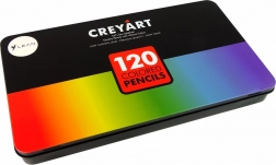 Set complet pentru creație artistică: 120 de creioane colorate artistice într-o cutie metalică elegantă, cu 3 niveluri a câte 40 de bucăți. Creioanele au lungimea de 17 cm și un lac negru pentru o prindere confortabilă. Organizare practică, acces ușor datorită benzilor elastice, certificare CE și conformitate cu EN71. Potrivite pentru copii de la 3 ani și adulți.