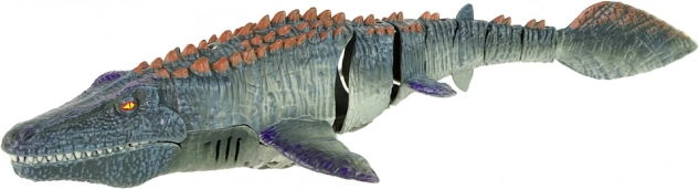 Dinozaurul are o coadă mobilă, datorită căreia poate înota liber sub apă. Cu telecomanda maro (13 cm x 7 cm x 4 cm), care funcționează cu 2 baterii AA de 1,5V (nu sunt incluse), puteți controla mișcările sale: sus, jos, dreapta, stânga, înapoi, înainte. Telecomanda are, în plus, 2 butoane pentru activarea pulverizatorului de apă, amplasat în partea din spate a acestei șopârle acvatice.