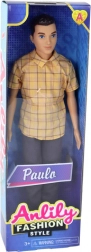 Păpușa PAULO este pregătită pentru aventuri nesfârșite. Cămașa sa galbenă în carouri cu mânecă scurtă, pantalonii închiși la culoare și pantofii albi creează o ținută modernă care îi va atrage pe copii. Datorită articulațiilor mobile, păpușa poate fi ușor poziționată pentru a imagina diverse scenete și povești.