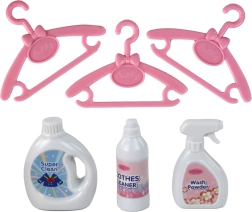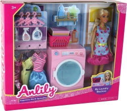 - Păpușă ANLILY, mașină de spălat, coș pentru rufe, 3 umerașe, 3 rochii, 3 sticluțe „detergent”, ambalaj original