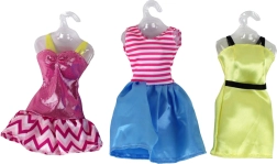 - Distracție fashion: 3 rochii diferite pentru schimbarea ținutelor păpușii și 3 umerașe pentru uscare.