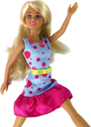 Păpușa ANLILY, cu păr blond lung și rochie colorată, este pregătită pentru povești zilnice – pieptănat, schimbat ținute și multă joacă.