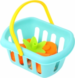 Include și un coș mic, atrăgător, colorat, potrivit pentru jocul de-a cumpărăturile.