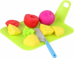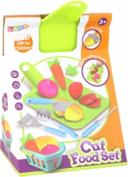 Include patru legume din plastic cu aspect realist, care pot fi tăiate cu ușurință.