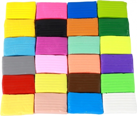 - 24 de culori intense de plastilină care sunt ușor de amestecat, ceea ce stimulează imaginația copiilor.