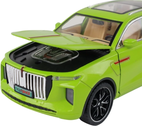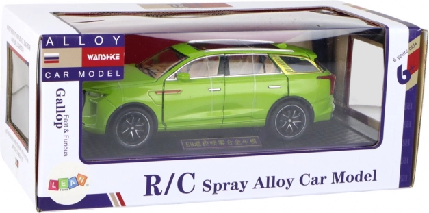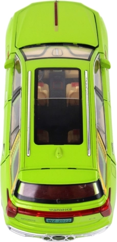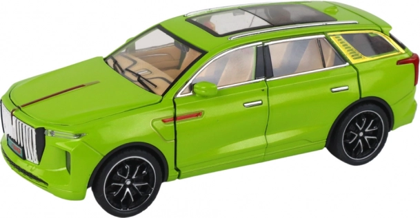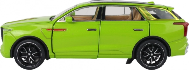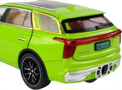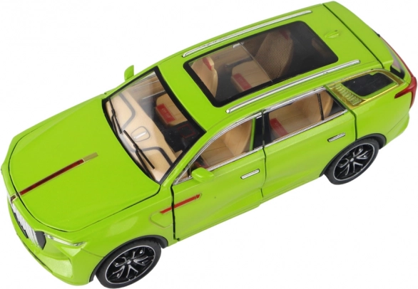 Modelul SUV jucărie se distinge prin detalii realiste, cum ar fi roțile negre, elementele argintii și interiorul vizibil. Fabricat din plastic, acest model este o copie fidelă a unui SUV adevărat.
