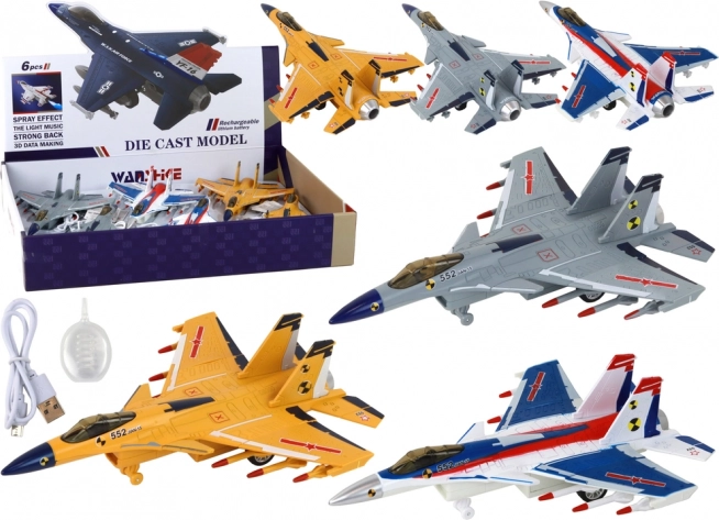 Avionul nostru pentru copii oferă distracție și dezvoltarea abilităților pentru toți micii fani ai aviației. La activare, sunt declanșate efecte sonore ale decolării unui avion de vânătoare, aducând mai multă autenticitate jocului. Cea mai mare atracție este efectul de aburi, care creează un spectacol vizual realist, ca o decolare adevărată a avionului.