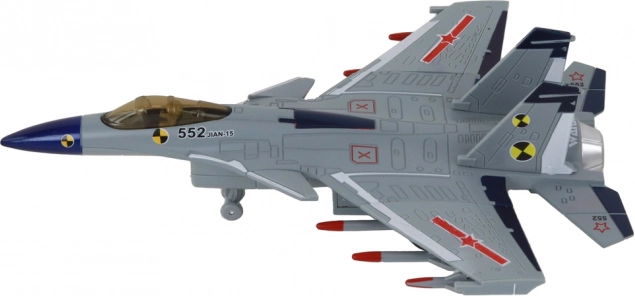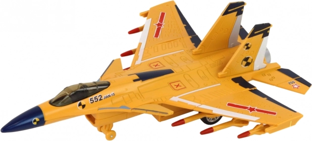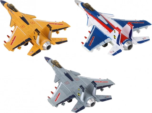 Avionul emite sunete de decolare a unui avion de vânătoare, adăugând autenticitate și amplificând imaginația copiilor în timpul jocului.