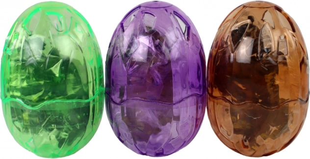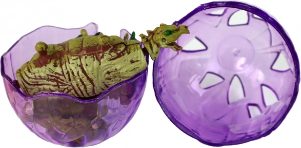 Ouul de plastic transparent, cu dimensiunile 9 × 6 × 6 cm, ascunde o figurină realistă de dinozaur pe care copilul o poate vedea chiar înainte de deschidere. Oul se deschide ușor și servește și ca o cutie practică pentru depozitarea jucăriei – grozav pentru călătorii și pentru camera copiilor.
