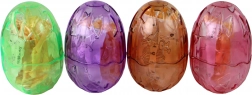 În fiecare ou se găsește un schelet galben din plastic, ușor de montat – distracție și învățare într-un singur produs.