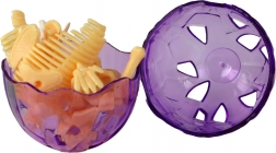 Sunt disponibile 4 culori de ou – mov, portocaliu, verde și roșu. Oul se deschide și se închide ușor, fiind ideal pentru joacă repetată, depozitarea pieselor sau ca obiect de colecție.