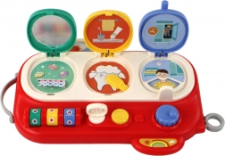 Tabla conține trei clapete care se deschid, fiecare oferind o interacțiune unică: