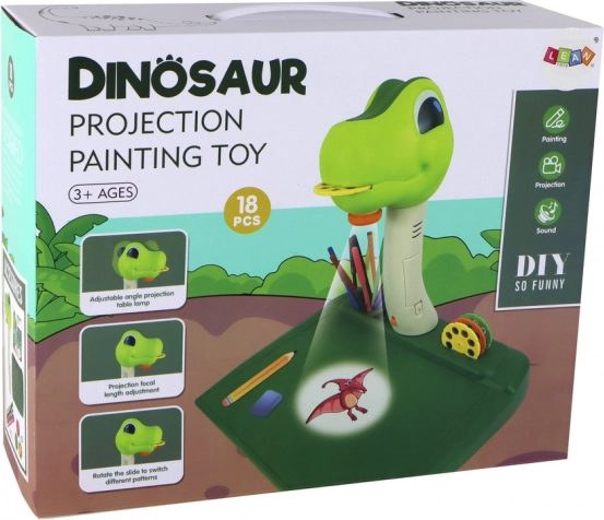 Acest proiector interactiv pentru copii, în formă de dinozaur, proiectează motive cu animăluțe ce pot fi ușor conturate și colorate. Datorită capului reglabil, copiii își pot ajusta înălțimea și unghiul de proiecție, crescând confortul și plăcerea în timpul creației. Sunetele integrate fac timpul petrecut desenând mai plăcut.