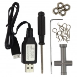 Pentru cursele de noapte, vehiculul este echipat cu lumini LED, care oferă stil și vizibilitate mai bună. Pachetul include încărcător USB și acumulator de 1400 mAh pentru autonomie ridicată și încărcare rapidă. Telecomanda funcționează la frecvența de 2.4 GHz pentru rază stabilă fără interferențe.