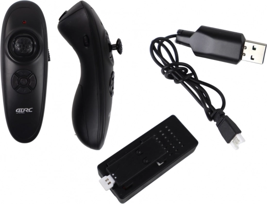 - Avion, telecomandă, acumulator, cablu de încărcare USB, 4 elice de rezervă, manual