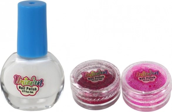 Acest set jucăuș pentru unghii le permite copiilor să-și exprime imaginația și să-și creeze propriul stil. Oja albă servește drept bază universală, iar cele două sclipiciuri pudră în nuanțe de roz oferă un luciu fermecător unghiilor. Șabloanele mari din plastic, cu motive animale și stelare, facilitează realizarea de modele regulate nu doar pe unghii, ci și pe hârtie sau alte suprafețe.