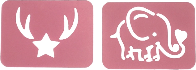 Șabloanele cu motiv de elefant și stea au colțuri rotunjite și forme simple, pentru ca cei mici să lucreze ușor atât pe unghii, cât și pe hârtie.