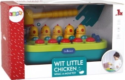 Pornește distracția cu ciocănelul acasă! După pornire se aude o melodie veselă, iar butoanele roșii se aprind aleatoriu. Sarcina ta este să lovești pozițiile iluminate cu ciocănelul inclus – astfel activezi mișcarea puișorilor și aduni puncte. Pe măsură ce scorul crește, jocul se accelerează, așa că nu vor lipsi suspansul și râsetele.