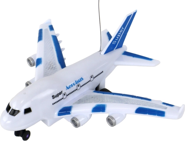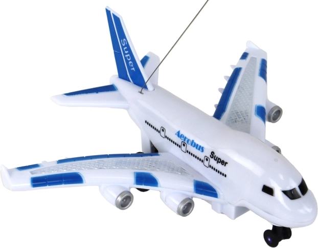 Modelul RC de avion „Aerobus” este alegerea perfectă pentru micii pasionați de aviație. Caroseria elegantă albă cu detalii albastre oferă, pe lângă un aspect stilat, și experiențe realiste. Copiii se vor bucura de efectele luminoase de pe aripi, care luminează orice joc, și de sunetele fidele, ce accentuează senzația unui zbor autentic.