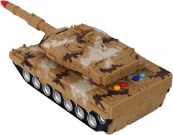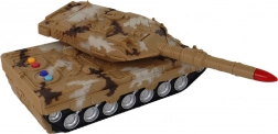 Tancul este acoperit cu un model de camuflaj în nuanțe de galben și bej, cu un aspect realist și turnuri rotative funcționale.