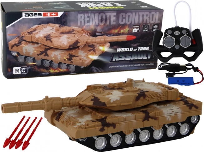 Controlerul inclus în set permite controlul deplin al vehiculului, făcând jocul captivant atât pentru copii, cât și pentru adulți. Din tanc puteți lansa rachete pentru trageri spectaculoase și competiții. Funcțiile sonore și luminoase te atrag în bătălii virtuale, stimulând mai mult imaginația.