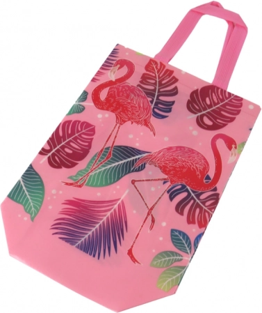 Punga cadou roz cu model flamingo adaugă cadoului tău eleganță și farmec tropical. Este fabricată din material rezistent, care protejează în siguranță conținutul, iar datorită designului universal este potrivită pentru zile de naștere, sărbători și alte ocazii. În plus, este reutilizabilă.