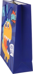 Oferă strălucire cadourilor tale cu sacoșa albastră din hârtie cu dinozaur vesel. Hârtia de calitate cu luciu discret și mânerele rezistente din șnur transportă în siguranță surprizele și asigură o prezentare frumoasă.