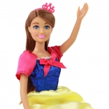 Păpușa are păr lung întunecat și o rochie galbenă elegantă, care va fermeca orice copil.