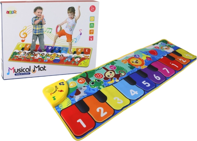 Acest covoraș de dans este decorat cu ilustrații fermecătoare ale diferitelor animale, ceea ce îl face o jucărie atrăgătoare pentru copiii mici. Permite redarea melodiilor integrate, care încurajează copiii să danseze și să cânte.