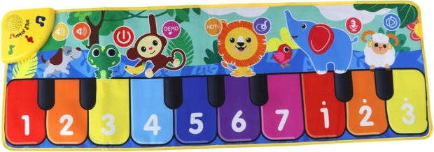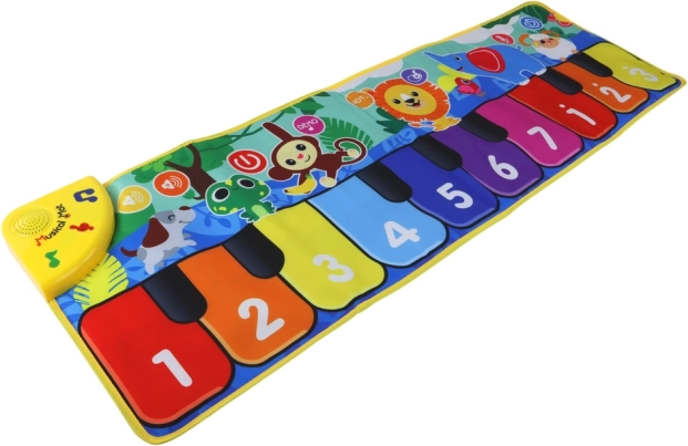 Covorașul este echipat cu funcția de reglare a volumului și opțiunea de reducere a sunetului, ceea ce veți aprecia în multe situații. Clapele interactive oferă copiilor posibilitatea de a crea propria muzică, iar funcția de înregistrare păstrează cu ușurință experimentele lor melodice.