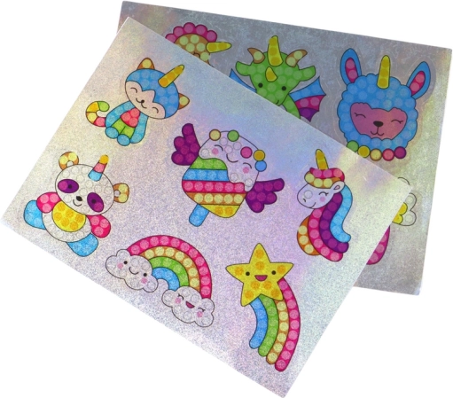 Acest set creativ le permite copiilor să devină mici artiști. Este suficient să preiei o pietricică cu pixul special și să o lipești pe locul marcat al autocolantului – pas cu pas ia naștere un motiv sclipitor care va decora caietul, rucsacul sau penarul.