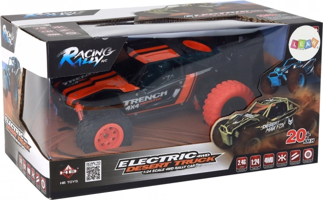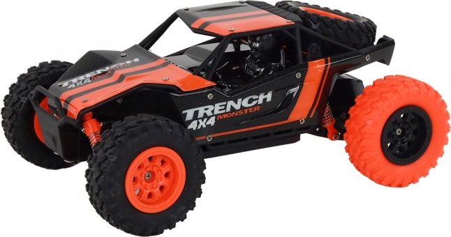 Această mașină RC off-road rezistentă, în culoare portocalie atrăgătoare, este construită pentru viteză și aventură în afara drumurilor asfaltate. Dimensiunile compacte facilitează manevrabilitatea, în timp ce tracțiunea integrală și amortizoarele robuste oferă tracțiune excelentă și rulare lină peste denivelări.