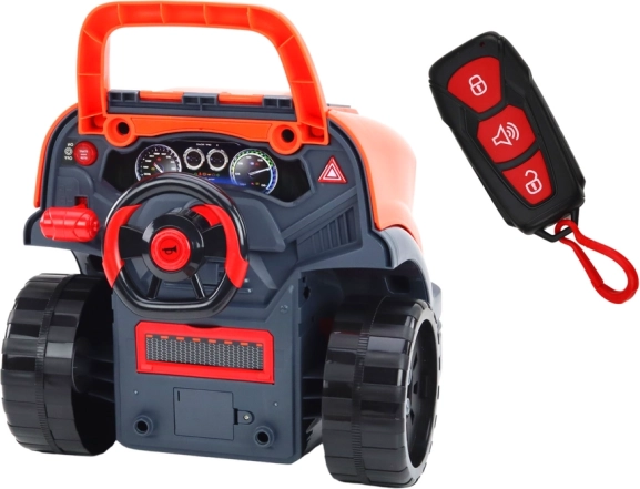 În plus, pachetul include o telecomandă care imită cheia mașinii, adăugând realism și implicând și mai mult copiii în distracția interactivă.