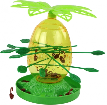 Construiți trunchiul transparent, introduceți „rămurelele” verzi, turnați maimuțele și închideți coroana. Jucătorii se schimbă pe rând și scot cu grijă bețișoarele. Fiecare maimuță care cade se punctează. Câștigă cel căruia îi cad cele mai puține maimuțe.