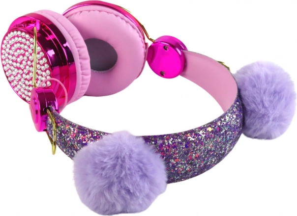 Aceste căști sunt decorate cu o bandă strălucitoare și urechiușe mov de pluș, ceea ce le transformă nu doar într-un instrument practic, ci și într-un accesoriu de modă. Funcții de reglare a sunetului și schimbarea pieselor permit controlul deplin asupra ascultării muzicii preferate. Volumul limitat protejează urechile copiilor și oferă bucurie în ascultarea cântecelor, cărților audio sau poveștilor. Designul reglabil asigură că căștile se potrivesc perfect pe capul copilului și sunt confortabile și stabile. Cu ajutorul unui cablu cu microfon încorporat, copilul poate să efectueze apeluri ușor și pachetul include și un cablu de încărcare, care asigură că căștile sunt mereu pregătite de utilizare.