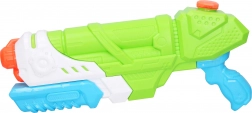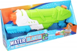 Acest pistol cu apă, cu mecanism de pompare, aduce acțiune imediată – pur și simplu pompezi apa și lansezi un jet răcoritor. Datorită lungimii de 46 cm, se ține bine în mână și este grozav pentru jocuri și dueluri de vară cu prietenii.