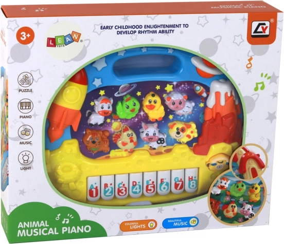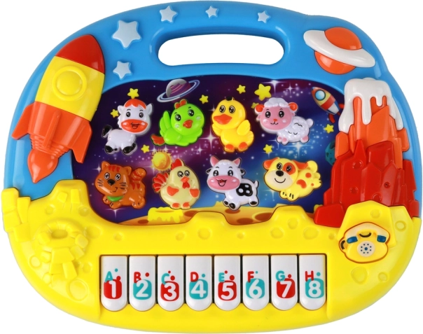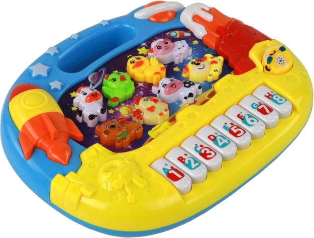 - Tematica spațiului dezvoltă imaginația copiilor și conectează tastele cu sunetele animalelor și cifrelor.