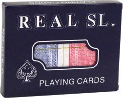 Cărțile de joc REAL SL oferă o experiență de joc deosebită cu două pachete în format clasic. Cărțile sunt fabricate din carton de calitate cu inserție de carbon și sunt lăcuite pentru a asigura o alunecare excelentă și o absorbție redusă a umidității.