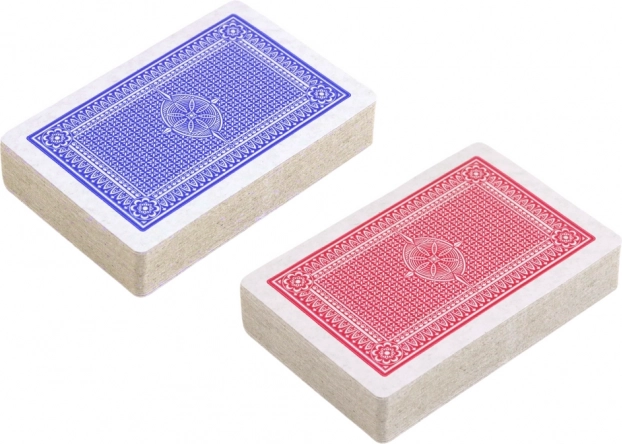 Cu două pachete în albastru și roșu, jocul dvs. de cărți va deveni stilat. Fiecare pachet este detaliat decorat și potrivit pentru orice joc de cărți tradițional.