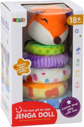 Această piramidă din pluș, plină de culori, este plăcută la atingere și, datorită formei, se stivuiește ușor de către copii. Inelele de dimensiuni diferite și culori vii susțin coordonarea mână–ochi, dezvoltarea motricității fine și primele raționamente logice. În vârf îi așteaptă o vulpiță drăgălașă, care stimulează imaginația și transformă învățarea în joacă.